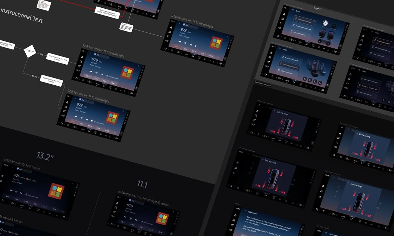 Led the UX/UI panoramic display and rear controller content, as well as visual items in center screen.